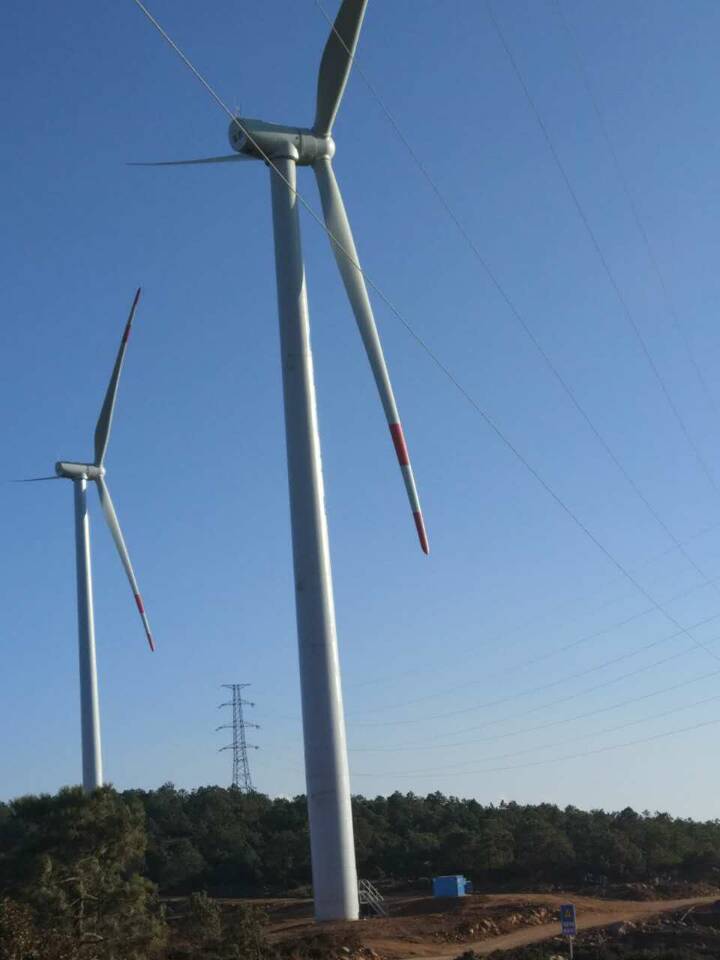 2016年12月,风力发电项目成功并网运行!该项目总装机4.95万千瓦,安装单机容量为1500千瓦风电机组33台,年均发电量1.14亿千瓦时,年利用小时2301小时,工程总投资4.58亿元,年产值约0.6亿元。该工程由A、B二条35千伏集电线路接入升压站,再送至电网。